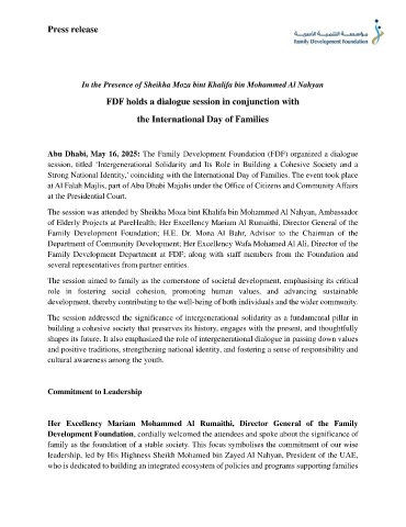 Abu Dhabi, May 16, 2025: The Family Development Foundation (FDF) organized a dialogue