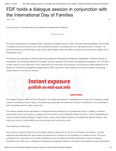 5/19/25, 11:22 AM FDF holds a dialogue session in conjunction with the International Day of Families - Middle East Business News and Information - …