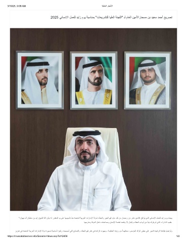 "،نﺎﯾﮭﻧ لآ نﺎطﻠﺳ نﺑ دﯾاز ﺦﯾﺷﻟا ﷲ نذﺈﺑ ﮫﻟ روﻔﻐﻣﻟا دﯾ ﻰﻠﻋ ﺎﮭﺳﯾﺳﺄﺗ ذﻧﻣ ةدﺣﺗﻣﻟا ﺔﯾﺑرﻌﻟا تارﺎﻣﻹا ﺔﻟودﻟ ءﺎطﻌﻟاو رﯾﺧﻟا مﯾﻗ ،مﺎﻋ لﻛ نﻣ نﺎﺿﻣر نﻣ رﺷﻋ ﻊﺳﺎﺗﻟا ﻖﻓاوُﯾ يذﻟا ﻲﻧﺎﺳﻧﻹا لﻣﻌﻠﻟ دﯾاز موﯾ دّﺳﺟﯾ