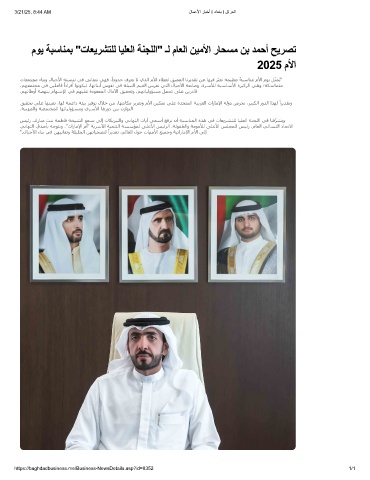 موﯾ ﺔﺑﺳﺎﻧﻣﺑ "تﺎﻌﯾرﺷﺗﻠﻟ ﺎﯾﻠﻌﻟا ﺔﻧﺟﻠﻟا" ـﻟ مﺎﻌﻟا نﯾﻣﻷا رﺎﺣﺳﻣ نﺑ دﻣﺣأ ﺢﯾرﺻﺗ