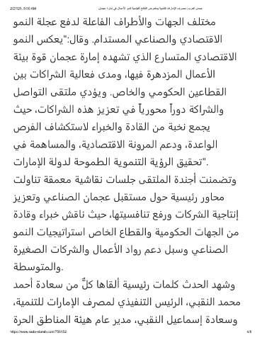 2/27/25, 8:50 AM نﺎﻣﺟﻋ ةرﺎﻣإ ﻲﻓ لﺎﻣﻋﻷا وﻣﻧﻟ ﺔﯾﺳﺎﯾﻘﻟا ﺞﺋﺎﺗﻧﻟا ضرﻌﺗﺳﯾ ﺔﯾﻣﻧﺗﻠﻟ تارﺎﻣﻹا فرﺻﻣ :برﻌﻟا ىدﺻ