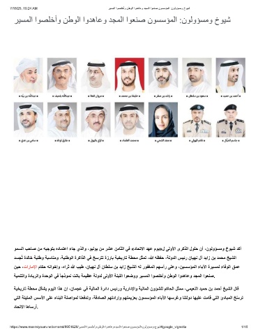نﯾﺣ ،تارﺎﻣﻹا مﺎﻛﺣ ﮫﻧاوﺧإو ،هارﺛ ﷲ بﯾط ،نﺎﯾﮭﻧ لآ نﺎطﻠﺳ نﺑ دﯾاز ﺦﯾﺷﻟا ﮫﻟ روﻔﻐﻣﻟا مﮭﺳأر ﻰﻠﻋو ،نﯾﺳﺳؤﻣﻟا ءﺎﺑﻵا ةرﯾﺳﻣﻟ ءﺎﻓوﻟا ﻖﻣﻋ