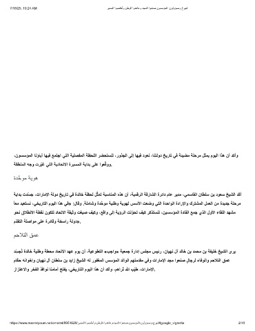 ﺔﯾادﺑ تدّﺳﺟ ،تارﺎﻣﻹا ﺔﻟود ﺦﯾرﺎﺗ ﻲﻓ ةدﻟﺎﺧ ﺔظﺣﻟ ل ّ ﺛﻣﺗ ﺔﺑﺳﺎﻧﻣﻟا هذھ نأ ،ﺔﯾﻣﻗرﻟا ﺔﻗرﺎﺷﻟا ةرﺋاد مﺎﻋ رﯾدﻣ ،ﻲﻣﺳﺎﻘﻟا نﺎطﻠﺳ نﺑ دوﻌﺳ ﺦﯾﺷﻟا دّﻛأ