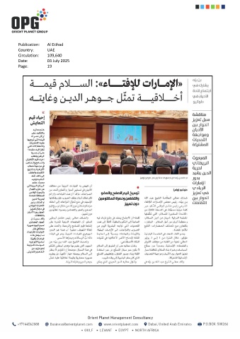 Publication: Al Etihad Country: UAE Circulation: 109,640 Date: 03 July 2025 Page: 19