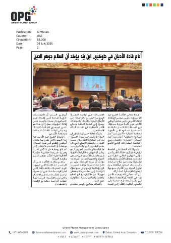 Publication: Al Watan Country: UAE Circulation: 83,000 Date: 03 July 2025 Page: 2