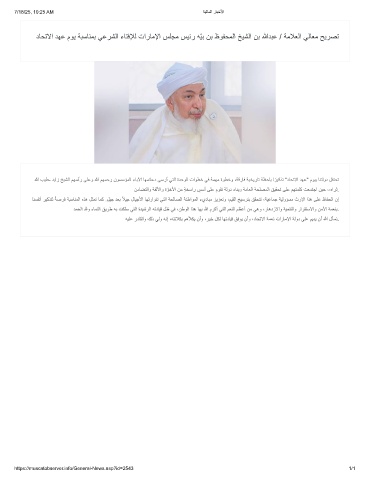 دﺎﺣﺗﻻا دﮭﻋ موﯾ ﺔﺑﺳﺎﻧﻣﺑ ﻲﻋرﺷﻟا ءﺎﺗﻓﻺﻟ تارﺎﻣﻹا سﻠﺟﻣ سﯾﺋر ﮫّﯾﺑ نﺑ ظوﻔﺣﻣﻟا ﺦﯾﺷﻟا نﺑ ﷲدﺑﻋ / ﺔﻣﻼﻌﻟا ﻲﻟﺎﻌﻣ ﺢﯾرﺻﺗ