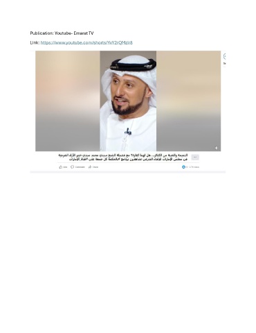 Publication: Youtube- Emarat TV Link: https://www.youtube.com/shorts/YvY2rQMzIr8