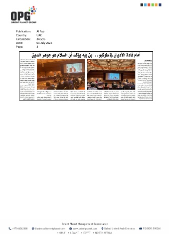 Publication: Al Fajr Country: UAE Circulation: 34,596 Date: 03 July 2025 Page: 3