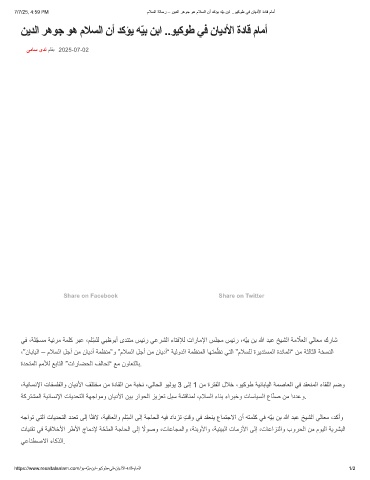 7/7/25, 4:59 PM مﻼﺳﻟا ﺔﻟﺎﺳر – نﯾدﻟا رھوﺟ وھ مﻼﺳﻟا نأ دﻛؤﯾ ﮫّﯾﺑ نﺑا ..وﯾﻛوط ﻲﻓ نﺎﯾدﻷا ةدﺎﻗ مﺎﻣأ
