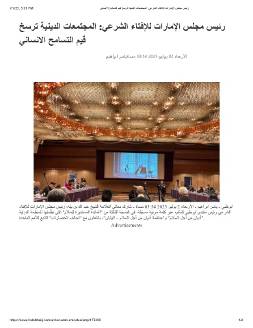 ءﺎﺘﻓﻺﻟ تارﺎﻣﻹا ﺲﻠﺠﻣ ﺲﯿﺋر ،ﮫّﯿﺑ ﻦﺑ ﷲ ﺪﺒﻋ ﺦﯿﺸﻟا ﺔﻣ ّ ﻼﻌﻟا ﻲﻟﺎﻌﻣ كرﺎﺷ - ًءﺎﺴﻣ 03:54 2025 ﻮﯿﻟﻮﯾ 2 ءﺎﻌﺑرﻷا - ﻢﯿھاﺮﺑا ﺮﺳﺎﯾ - ﻲﺒظﻮﺑا