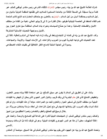 ﻰﻠﻋ ثﺣﻟاو ،ﺔﻣﺣرﻟاو ﺢﻣﺎﺳﺗﻟا مﯾﻗ ﺔﻋﺎﺷإ ﻰﻠﻋ ةردﺎﻗ ﺔﯾﻧﯾدﻟا تﺎﻌﻣﺗﺟﻣﻟا نأ ،مﻠﺳﻠﻟ ﻲﺑظوﺑأ ىدﺗﻧﻣ سﯾﺋر فﺎﺿأو
