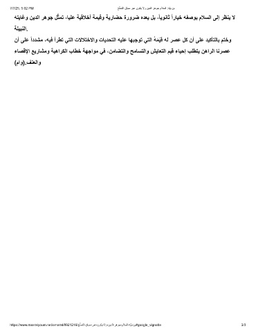 ﮫﺗﯾﺎﻏو نﯾدﻟا رھوﺟ لﺛﻣﺗ ،ﺎﯾﻠﻋ ﺔﯾﻗﻼﺧأ ﺔﻣﯾﻗو ﺔﯾرﺎﺿﺣ ةرورﺿ هدﻌﯾ لﺑ ،ًﺎﯾوﻧﺎﺛ ًارﺎﯾﺧ ﮫﻔﺻوﺑ مﻼﺳﻟا ﻰﻟإ رظﻧﯾ ﻻ