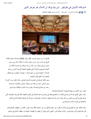 7/7/25, 5:02 PM تﻧﯾوﺑ ودرأ - نﯾدﻟا رھوﺟ وھ مﻼﺳﻟا نأ دﻛؤﯾ ﮫّﯾﺑ نﺑا ..وﯾﻛوط ﻲﻓ نﺎﯾدﻷا ةدﺎﻗ مﺎﻣأ