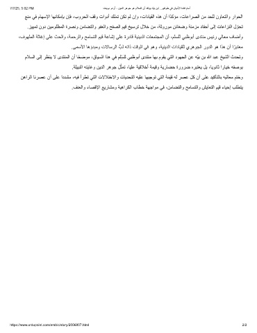 ،فوﮭﻠﻣﻟا ﺔﺛﺎﻏإ ﻰﻠﻋ ثﺣﻟاو ،ﺔﻣﺣرﻟاو ﺢﻣﺎﺳﺗﻟا مﯾﻗ ﺔﻋﺎﺷإ ﻰﻠﻋ ةردﺎﻗ ﺔﯾﻧﯾدﻟا تﺎﻌﻣﺗﺟﻣﻟا نأ ،مﻠﺳﻠﻟ ﻲﺑظوﺑأ ىدﺗﻧﻣ سﯾﺋر ﻲﻟﺎﻌﻣ فﺎﺿأو
