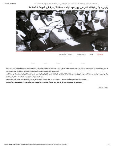 ﺔﯾﻧطو ةدﺣو ءﺎﻧﺑ ﻲﻓ ﺔﻣﮭﻣ ﺔطﺣﻣو ،تارﺎﻣﻹا ﺔﻟود ةرﯾﺳﻣ ﻲﻓ ﺔﻗرﺎﻓ ﺔﯾﺧﯾرﺎﺗ ﺔظﺣﻟ دﻌُﯾ دﺎﺣﺗﻻا دﮭﻋ موﯾ نأ ،ﻲﻋرﺷﻟا ءﺎﺗﻓﻺﻟ تارﺎﻣﻹا سﻠﺟﻣ سﯾﺋر ،ﮫّﯾﺑ نﺑ ظوﻔﺣﻣﻟا ﺦﯾﺷﻟا نﺑ ﷲدﺑﻋ ﺔﻣﻼﻌﻟا ﻲﻟﺎﻌﻣ دﻛأ