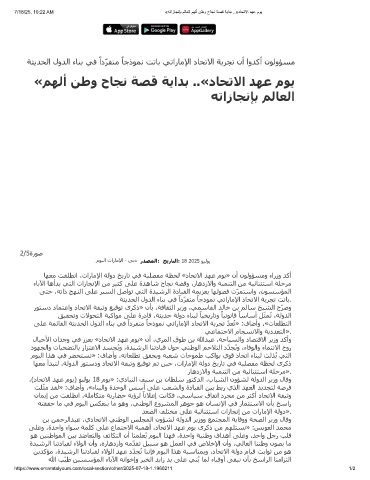 ﺎﮫﻌﻣ ﺖﻘﻠﻄﻧا ،تارﺎﻣﻹا ﺔﻟود ﺦﻳرﺎﺗ ﻲﻓ ﺔﯿﻠﺼﻔﻣ ﺔﻈﺤﻟ «دﺎﺤﺗﻻا ﺪﮫﻋ مﻮﻳ» نأ نﻮﻟوﺆﺴﻣو ءارزو ﺪﻛأ