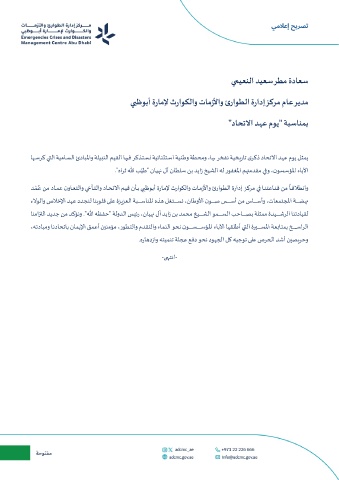 يبظوبأ ةراملإ ثراوكلاو تامزلأاو ئراوطلا ةرادإ زكر م  ماع ريد م