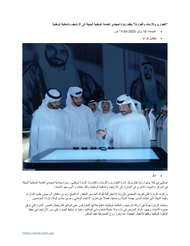 ةليدبلا ةينطولا ةمدخلا يدنجمل ةيناديم ةرايز ،يبظوبأ ةراملإ ثراوكلاو تامزلأاو ئراوطلا ةرادإ زكرم مظن /ماو /ويلوي   18  يف يبظوبأ