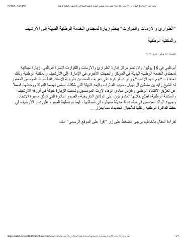ﺔﯿﻧاﺪﯿﻣ ةرﺎﯾز ،ﻲﺒظﻮﺑأ ةرﺎﻣﻹ ثراﻮﻜﻟاو تﺎﻣزﻷاو ئراﻮﻄﻟا ةرادإ ﺰﻛﺮﻣ ﻢﻈﻧ /ماو /ﻮﯿﻟﻮﯾ 18 ﻲﻓ ﻲﺒظﻮﺑأ