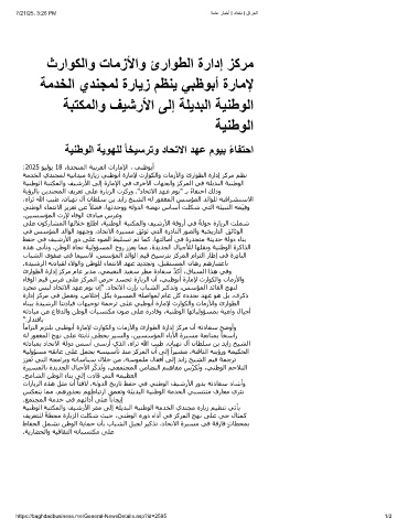 ﺔﯿﻨطﻮﻟا ﺔﺒﺘﻜﻤﻟاو ﻒﯿﺷرﻷا ﻰﻟإ ةرﺎﻣﻹا ﻲﻓ ىﺮﺧﻷا تﺎﮫﺠﻟاو ﺰﻛﺮﻤﻟا ﻲﻓ ﺔﻠﻳﺪﺒﻟا ﺔﯿﻨطﻮﻟا