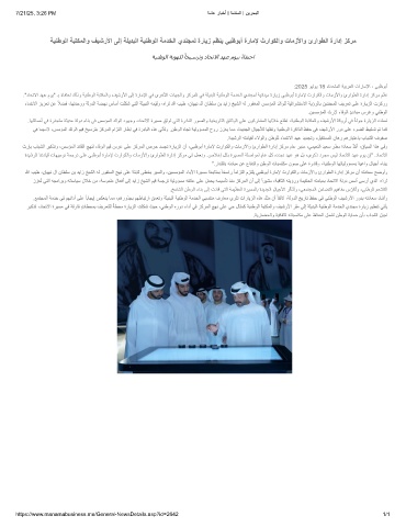 ."دﺎﺣﺗﻻا دﮭﻋ موﯾ" ـﺑ ًءﺎﻔﺗﺣا كﻟذو ﺔﯾﻧطوﻟا ﺔﺑﺗﻛﻣﻟاو فﯾﺷرﻷا ﻰﻟإ ةرﺎﻣﻹا ﻲﻓ ىرﺧﻷا تﺎﮭﺟﻟاو زﻛرﻣﻟا ﻲﻓ ﺔﻠﯾدﺑﻟا ﺔﯾﻧطوﻟا ﺔﻣدﺧﻟا يدﻧﺟﻣﻟ ﺔﯾﻧادﯾﻣ ةرﺎﯾز ﻲﺑظوﺑأ ةرﺎﻣﻹ ثراوﻛﻟاو تﺎﻣزﻷاو ئراوطﻟا ةرادإ زﻛرﻣ مظﻧ