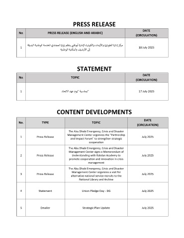 No. PRESS RELEASE (ENGLISH AND ARABIC) DATE
