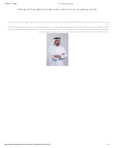 "دﺎﺣﺗﻻا دﮭﻋ موﯾ" ﺔﺑﺳﺎﻧﻣﺑ ﻲﺑظوﺑأ ةرﺎﻣﻹ ثراوﻛﻟاو تﺎﻣزﻷاو ئراوطﻟا ةرادإ زﻛرﻣ مﺎﻋ رﯾدﻣ ﻲﻣﯾﻌﻧﻟا دﯾﻌﺳ رطﻣ ةدﺎﻌﺳ