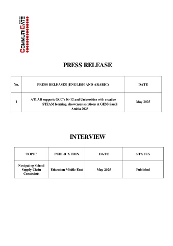 No. PRESS RELEASES (ENGLISH AND ARABIC) DATE