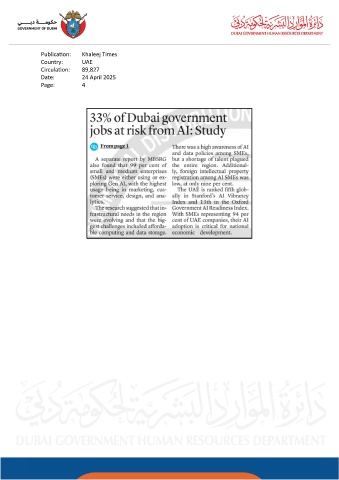 Publication: Khaleej Times Country: UAE Circulation: 89,827 Date: 24 April 2025 Page: 4