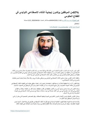 يعانطصلاا ءاكذلا تاينقتل يبد ةموكح يفظوم دامتعاو تاروصتو تامادختسا سايقل اهعون نم ةلماش ةيليلحت ةسارد لوأ ريرقتلا ّدعُيو