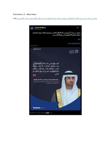 Publication: X – Wam News Link: يبدب ملاعلا لوح نم ايجولونكتلا لبقتسم عانص فيضتست ةيونس ةطحم حبصيس يعانطصلاا ءاكذلل يبد عوبسأ :دمحم نب نادمح