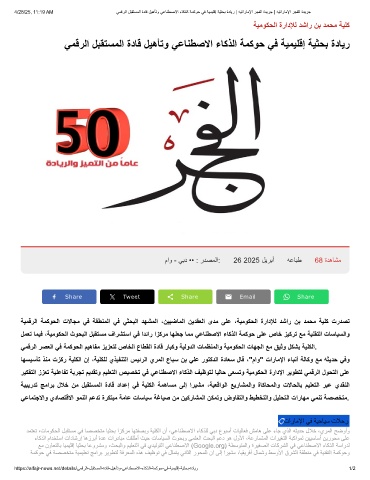 4/28/25, 11:19 AM ﻲﻣﻗرﻟا لﺑﻘﺗﺳﻣﻟا ةدﺎﻗ لﯾھﺄﺗو ﻲﻋﺎﻧطﺻﻻا ءﺎﻛذﻟا ﺔﻣﻛوﺣ ﻲﻓ ﺔﯾﻣﯾﻠﻗإ ﺔﯾﺛﺣﺑ ةدﺎﯾر | ﮫﯾﺗارﺎﻣﻹا رﺟﻔﻟا ةدﯾرﺟ | ﮫﯾﺗارﺎﻣﻹا رﺟﻔﻟا ةدﯾرﺟ