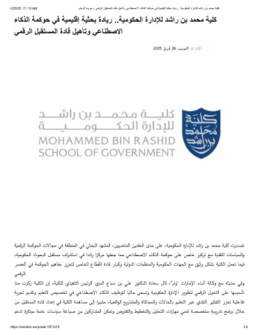 4/28/25, 11:19 AM نطوﻟا ةدﯾرﺟ › ﻲﻣﻗرﻟا لﺑﻘﺗﺳﻣﻟا ةدﺎﻗ لﯾھﺄﺗو ﻲﻋﺎﻧطﺻﻻا ءﺎﻛذﻟا ﺔﻣﻛوﺣ ﻲﻓ ﺔﯾﻣﯾﻠﻗإ ﺔﯾﺛﺣﺑ ةدﺎﯾر ..ﺔﯾﻣوﻛﺣﻟا ةرادﻺﻟ دﺷار نﺑ دﻣﺣﻣ ﺔﯾﻠﻛ