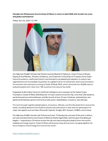 we have directed that the next Dubai AI Week be held in April 2026, with the goal of doubling all