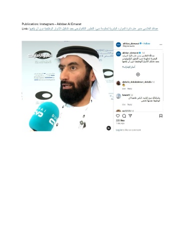 Publication: Instagram – Akhbar Al Emarat Link: اهيغلي نأ نود ةيفيظولا راودلأا ليكشت ديعي يجولونكتلا روطتلا :يبد ةموكحل ةيرشبلا دراوملا ةرئاد ماع ريدم يسلافلا اللهدبع