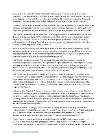 technology experts. Dubai AI Week will become a key annual event, bringing together the future