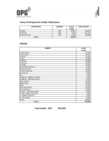 Value of Ad Spend for Arabic Publications