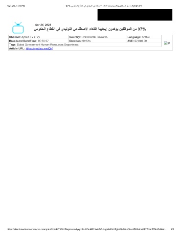 4/24/25, 1:31 PM 97% ﻲﻣوﻛﺣﻟا عﺎطﻘﻟا ﻲﻓ يدﯾﻟوﺗﻟا ﻲﻋﺎﻧطﺻﻻا ءﺎﻛذﻟا ﺔﯾﺑﺎﺟﯾإ نودﻛؤﯾ نﯾﻔظوﻣﻟا نﻣ :: Ajman TV