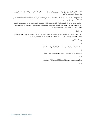 يديلوتلا يعانطصلاا ءاكذلا مادختسلا ةحضاو ةيقلاخأ تاداشرإ دوجو نأ نوري نيكراشملا نم )% 83 ( نأ ىلإ ريرقتلا راشأ امك