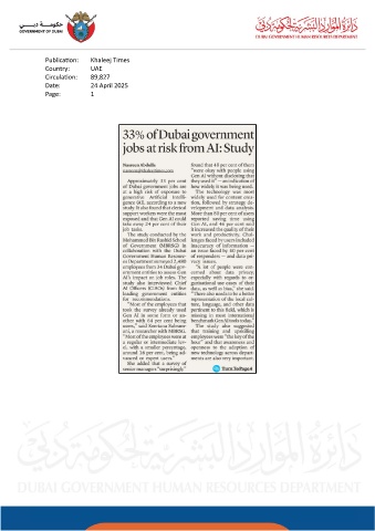Publication: Khaleej Times Country: UAE Circulation: 89,827 Date: 24 April 2025 Page: 1