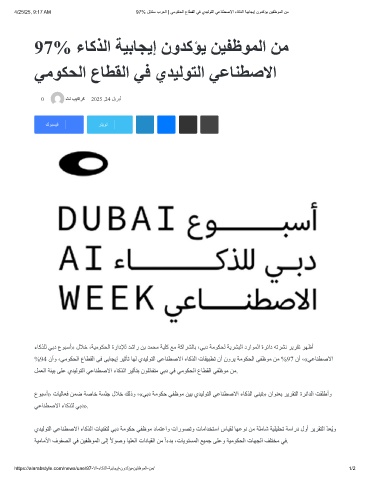 4/25/25, 9:17 AM 97% لﯾﺎﺗﺳ برﻌﻟا | ﻲﻣوﻛﺣﻟا عﺎطﻘﻟا ﻲﻓ يدﯾﻟوﺗﻟا ﻲﻋﺎﻧطﺻﻻا ءﺎﻛذﻟا ﺔﯾﺑﺎﺟﯾإ نودﻛؤﯾ نﯾﻔظوﻣﻟا نﻣ