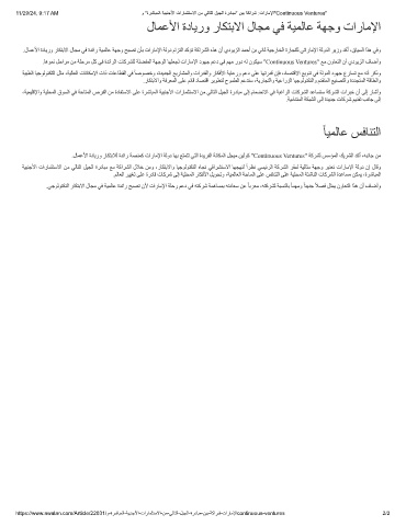 11/29/24, 9:17 AM و "ةرﺷﺎﺑﻣﻟا ﺔﯾﺑﻧﺟﻷا تارﺎﻣﺛﺗﺳﻻا نﻣ ﻲﻟﺎﺗﻟا لﯾﺟﻟا ةردﺎﺑﻣ" نﯾﺑ ﺔﻛارﺷ :تارﺎﻣﻹا"Continuous Ventures"