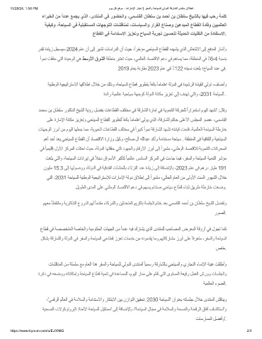 مھأ دﺣأ دﻌﯾ ﻲﺣﺎﯾﺳﻟا عﺎطﻘﻟا نأ دﺎﺻﺗﻗﻻا ةرازو لﯾﻛو ،ﺢﻟﺎﺻ لآ ﮫﻠﻟادﺑﻋ دﻛأو ﺔﻣادﺗﺳﻣ ﺔﺣﺎﯾﺳ . ﺔﻘطﻧﻣﻟا ﻲﻓ ﺔﯾﻓﺎﻘﺛﻟاو ﺔﯾﺣﺎﯾﺳﻟا