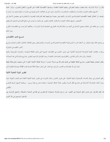 ىرﺑﻛﻟا تادﺎﺻﺗﻗﻻا ﻊﻣ ةرھدزﻣﻟا ﺎﮭﺗﺎﻗﻼﻋو ،تارﺎﻣﻹا ﺔﻟودﻟ ﺔﯾﻣﺎﻧﺗﻣﻟا نﯾﯾرﺎﺟﺗﻟا ءﺎﻛرﺷﻟا ﺔﻛﺑﺷ نﻣ ﺎﯾﻧﺎﺑﻟأ ﻲﻓ لﺎﻣﻋﻷا ﻊﻣﺗﺟﻣ ةدﺎﻔﺗﺳا ﻰﻟإ ﮫﻌﻠطﺗ نﻋ برﻋأو