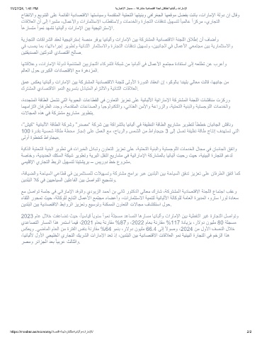 ﻖﻣﻋ سﻛﻌﯾ ﺎﯾﻧﺎﺑﻟأو تارﺎﻣﻹا نﯾﺑ ﺔﻛرﺗﺷﻣﻟا ﺔﯾدﺎﺻﺗﻗﻻا ﺔﻧﺟﻠﻟ ﻰﻟوﻷا ةرودﻟا دﺎﻘﻌﻧا نإ ،وﻛوﻟﺎﺑ ادﻧﯾﻠﺑ ﻲﻟﺎﻌﻣ تﻟﺎﻗ ،ﺎﮭﺑﻧﺎﺟ نﻣ