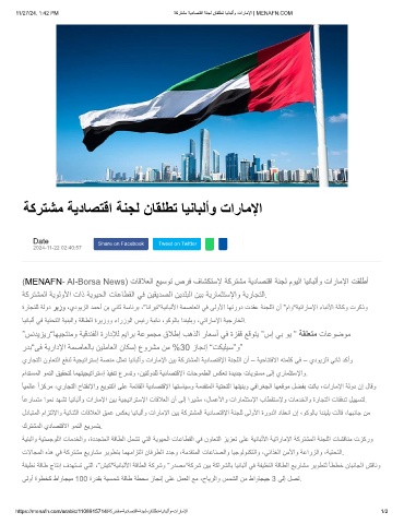 11/27/24, 1:42 PM ﺔﻛرﺗﺷﻣ ﺔﯾدﺎﺻﺗﻗا ﺔﻧﺟﻟ نﺎﻘﻠطﺗ ﺎﯾﻧﺎﺑﻟأو تارﺎﻣﻹا | MENAFN.COM