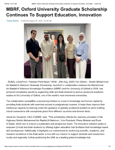 8/20/25, 10:21 AM MBRF, Oxford University Graduate Scholarship Continues To Support Education, Innovation - UrduPoint