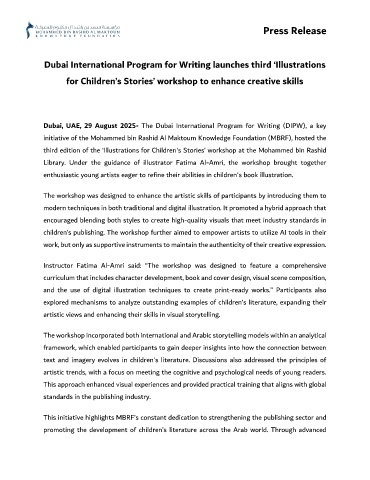 Dubai, UAE, 29 August 2025- The Dubai International Program for Writing (DIPW), a key