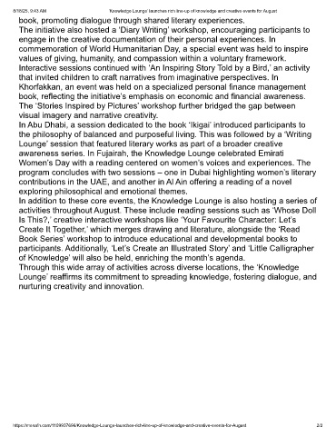 https://menafn.com/1109937696/Knowledge-Lounge-launches-rich-line-up-of-knowledge-and-creative-events-for-August 2/2