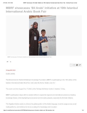 8/14/25, 10:01 AM MBRF showcases ‘Bil Arabi’ initiative at 10th Istanbul International Arabic Book Fair - Aletihad News Center